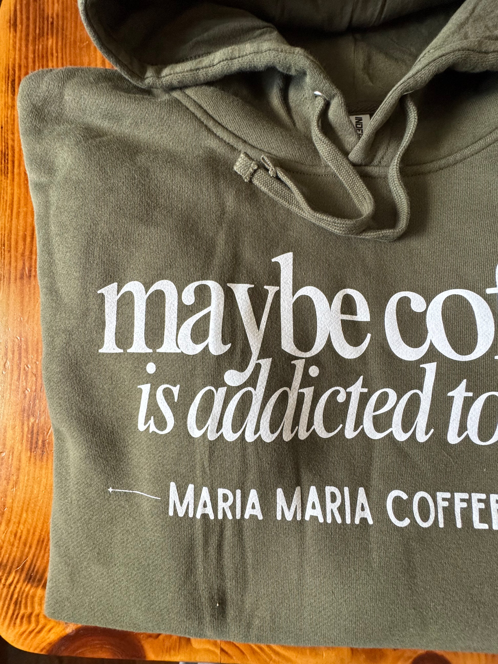 Stay cozy and showcase your love for coffee with the 'Maybe Coffee is addicted to me' hoodie. Made from high-quality materials, this hoodie combines comfort with a humorous design perfect for coffee enthusiasts.